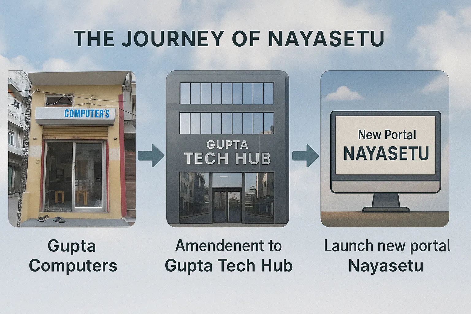 **"Launched Nayasetu.in as a complete citizen service platform. From Gupta Computers to Gupta Tech Hub, and now in 2025 to Nayasetu — our journey continues with a new generation, a new vision, and a new mission, building stronger digital bridges for every citizen of India.We aim to connect every household with reliable services, simplify government schemes, and empower people with the latest technology. ”